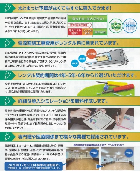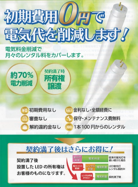 初期費用0円で導入可能なLED照明レンタルサービスを提供しています。